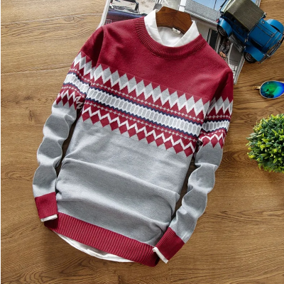Export Christmas Sweater Autumn New Arrived Fashion Teenagers Casual Color-Contrast Check Men's Sweater Knitwear Red