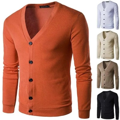 Men Winter Knitted V-neck Cardigan Plain Slim Fit Jumper Fashion Button Sweater