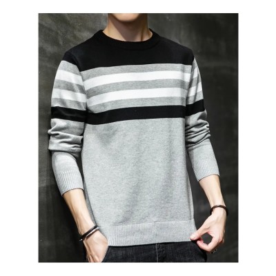 Stripe Sweater for Men Autumn Long-sleeved T-shirt Korean Round Neck Sweater Casual Bottoming Shirt