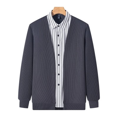 Spring and Autumn men's cardigan fake two-pieces coats sweater striped shirt lapel business casual sweater fashion