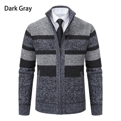 Men Winter Lambs Wool Cardigan Casual Loose Gray Zipper Knitted Sweater Fashion Contrast Long Sleeve Man Jumper New