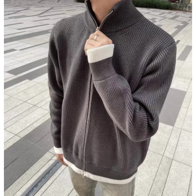 Korean Light Mature Style Solid Color Knitted Cardigan Men Stand-Up Collar Zipper Sweater Jacket High