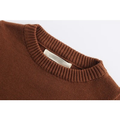 Chuhe Japanese Men's and Children's All-Match Cotton Brown round Neck Pullover Knitted Sweater Thin Base Sweater