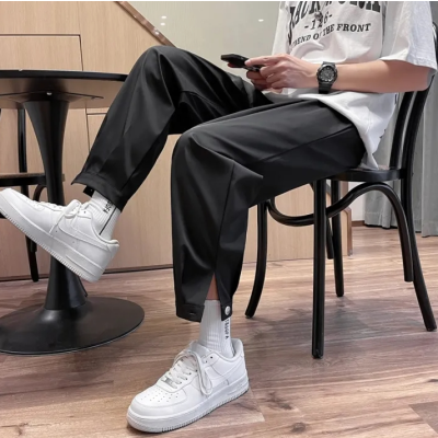Casual Long Pants Men Summer Thin Ice Silk Korean Style New Fashion Autumn Ninth Sports Jogger Pants