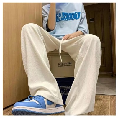 White Pants Men Summer Thin Straight-leg Loose Trendy Ins Trendy Drape Wide Leg Ice Silk Casual Pants Tide