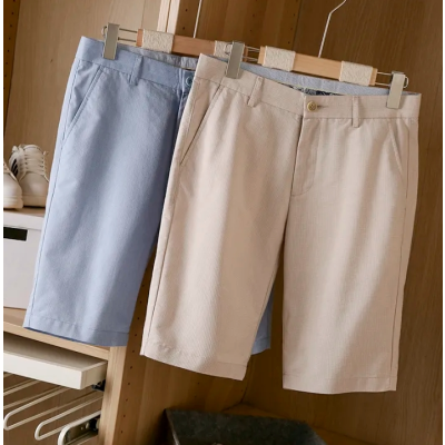Men's Casual Shorts Slim Fit Straight Short Pants Khaki Plaid Outerwear Trendy Fifth Pants Men's