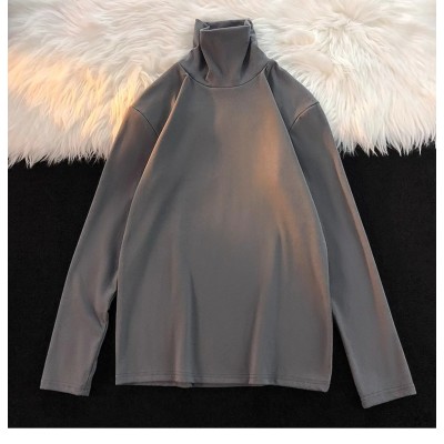 Shirt Men's Long Sleeve Slim Fit Inner Wear Warm with Velvet Autumn Clothes Men's Trendy Casual All-Matching