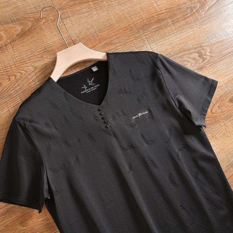 Summer Men's V-Collar Short Sleeve Coat Anti-Wrinkle Non-Ironing T-shirt Fashion