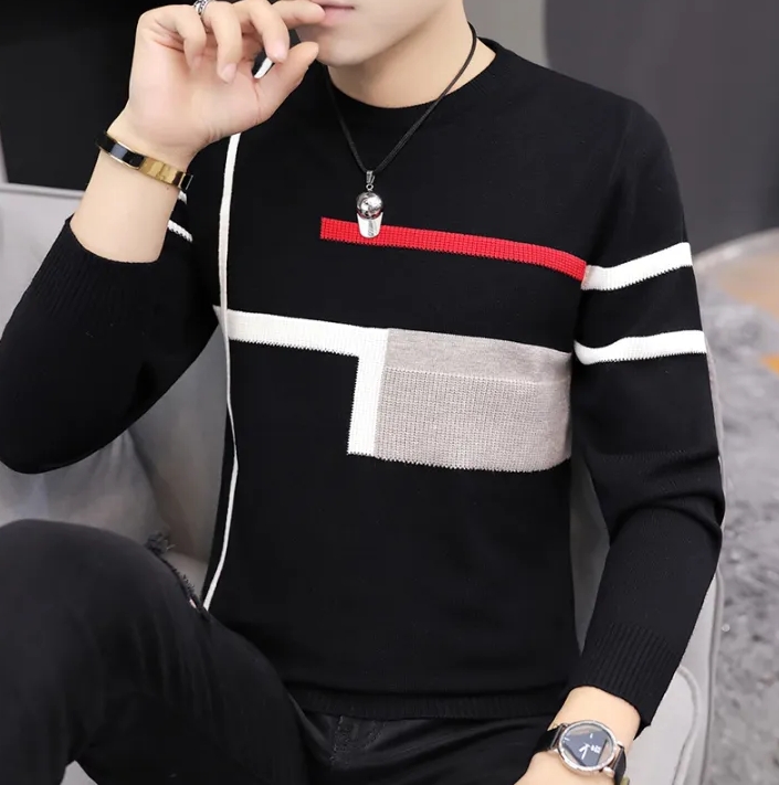 Spring and Autumn Crew Neck Casual Handsome Cool Men's Sweater