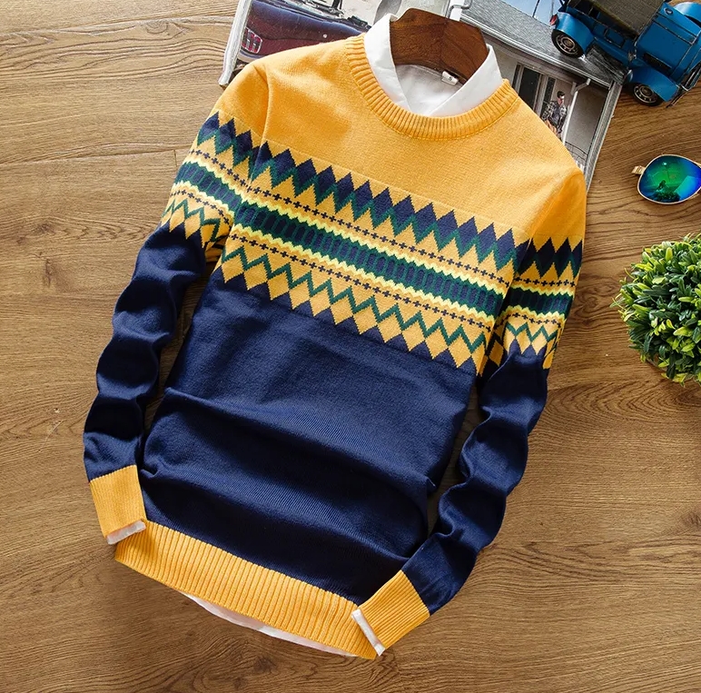 Export Christmas Sweater Autumn New Arrived Fashion Teenagers Casual Color-Contrast Check Men's Sweater Knitwear Red
