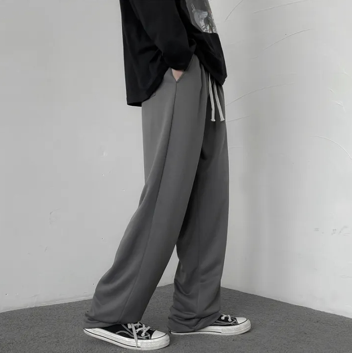 Spring and Autumn Gray Track Sweatpants Loose Track Pants Straight-Leg Pants Casual Pants Pure Color Pants