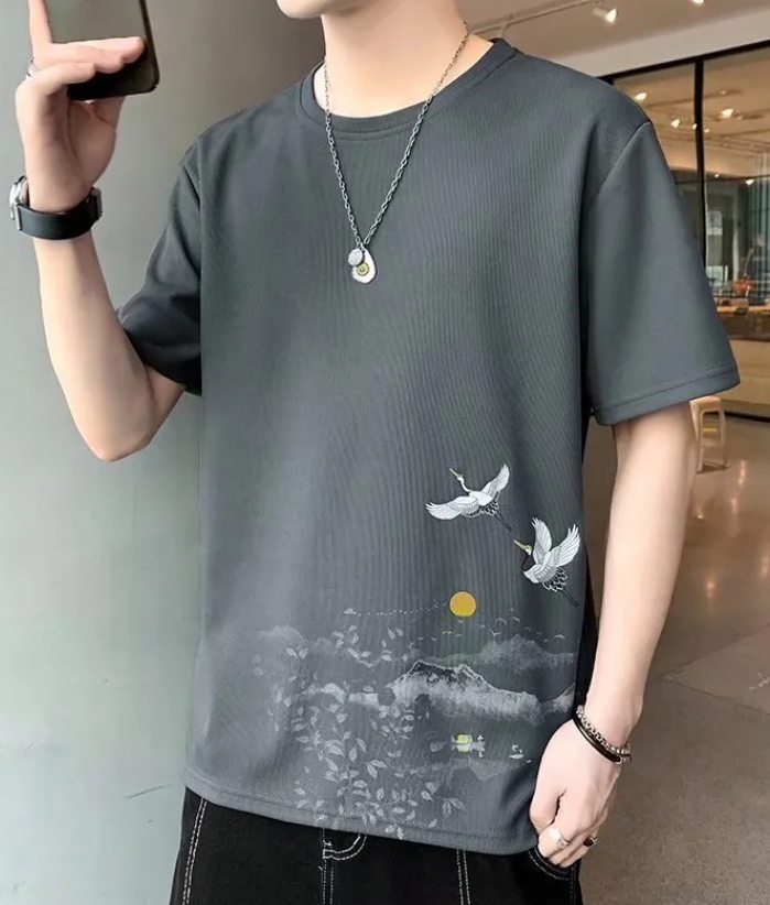 Summer Men's Ice Silk Short Sleeve T-shirt New Trousers Suit Versatile Large Size Casual round Neck Top Clothes Two-Piece Set